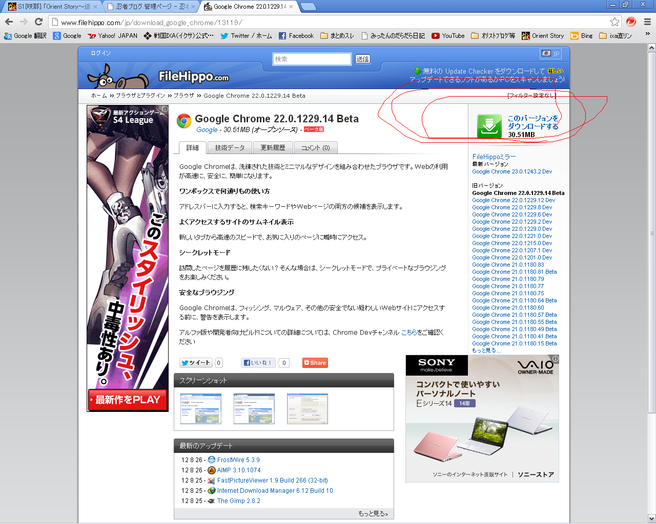 と、いうわけで、過去のクロームをインスコしに行きましょ!