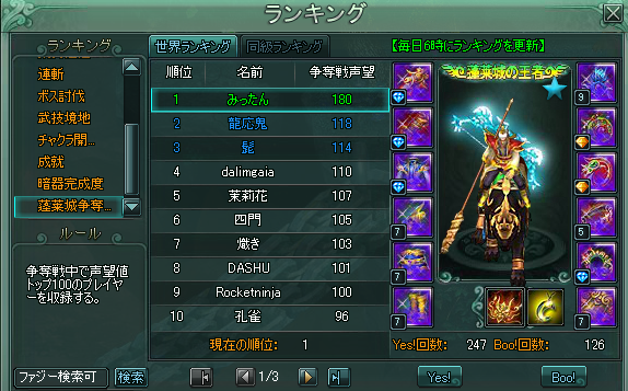 城戦ポイント1位ですた