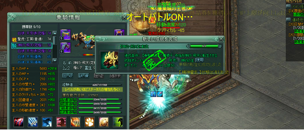 ちなみに、転生丹1315個、進化符は使ったり使わなかったり。